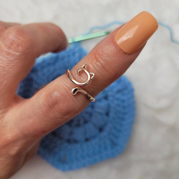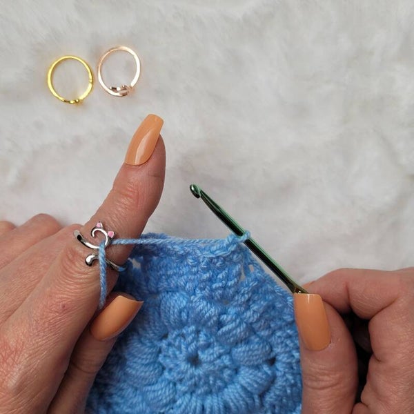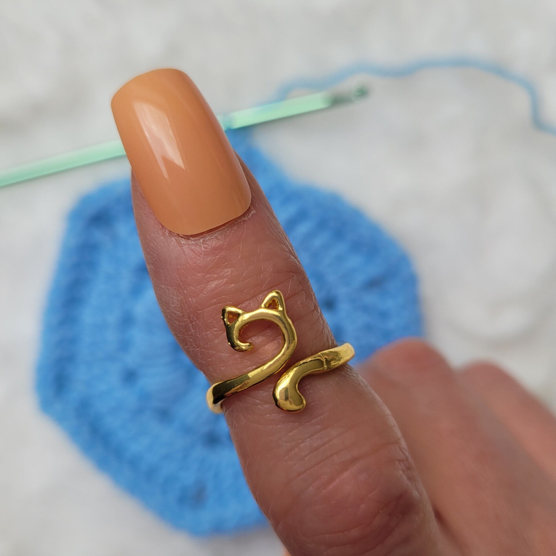 Kat haak of brei ring een garenspanning hulp voor bij het haken en breien. In 3 verschillende kleuren goud, roségoud en zilver met roze oren