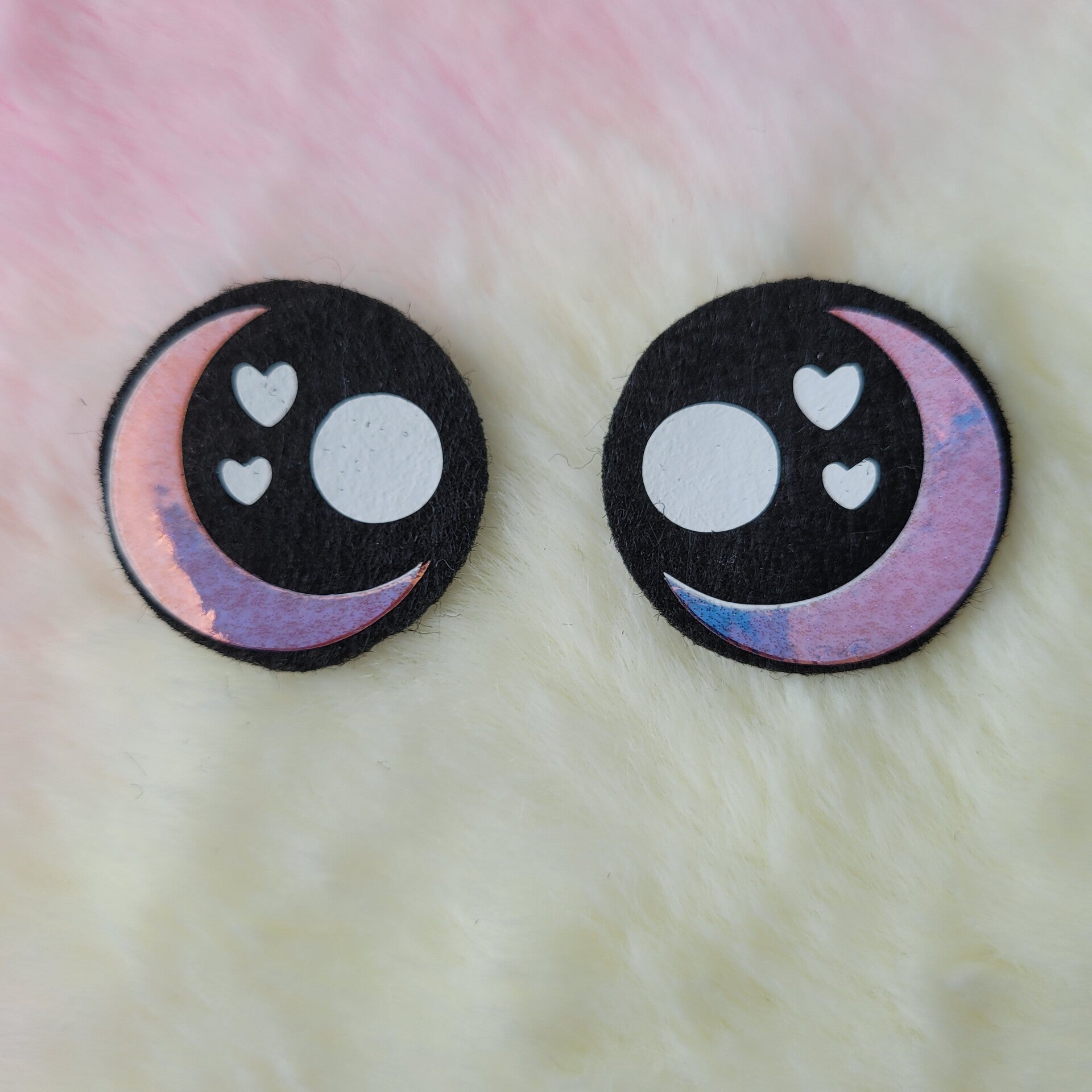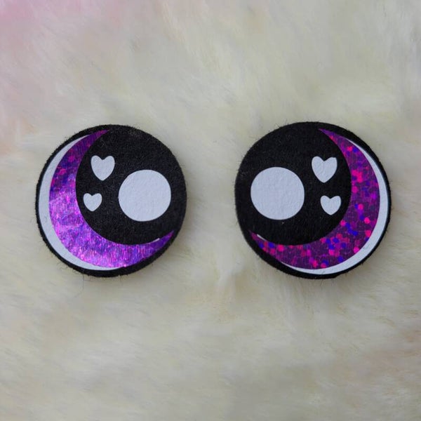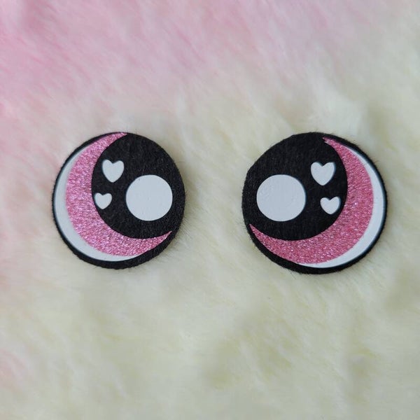 De ogen zijn dunner dan mijn andere vilt ogen/wimpers en ik vind deze persoonlijk fijner om op knuffels en poppen te plakken, met een lijmpistool gaat dit heel eenvoudig.