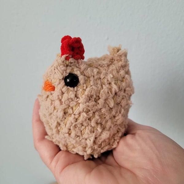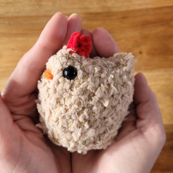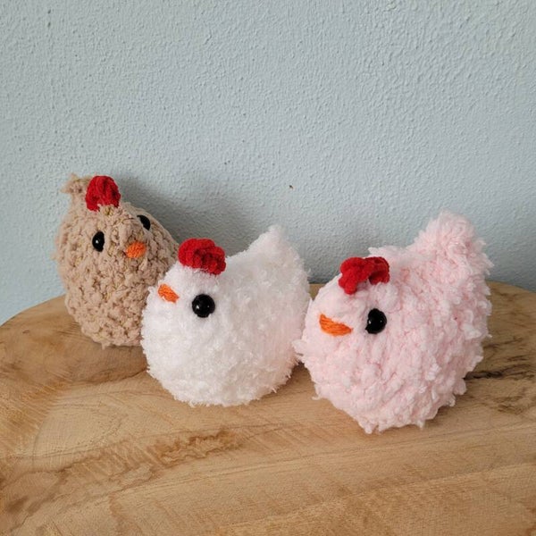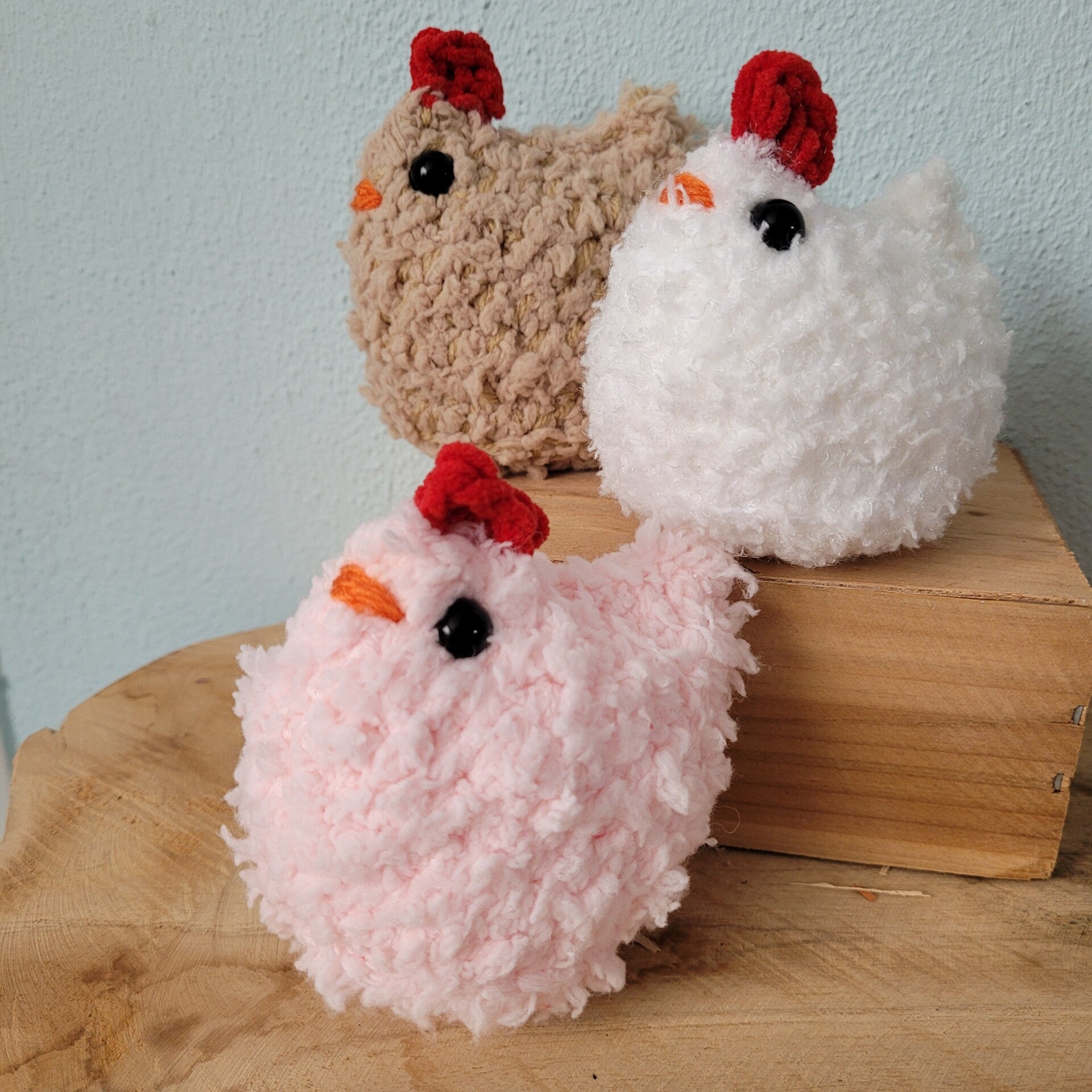 Wilt u deze kip(jes) in een andere kleur of andere garen bijvoorbeeld chenille bestellen dan is dit ook mogelijk, hou er wel rekening mee dat de kipjes gehaakt met chenille net zo groot zullen zijn als de kipjes op de foto, maar met acryl garen de helft kleiner.